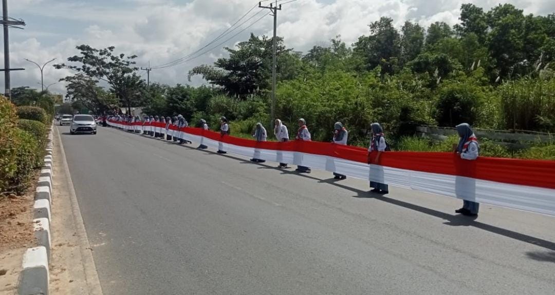 Koranmerdeka.com,Kendari – Semarakkan Kemerdekaan RI ke – 78, sebanyak 1.300 siswa Sekolah Menengah Kejuruan (SMK) Negeri 2 Kendari turut serta mengibarkan bendera merah putih sepanjang 17 kilometer dari jalan pembangunan Kendari Barat sampai Kecamatan Konda, Konsel pada Selasa (15/8/2023).