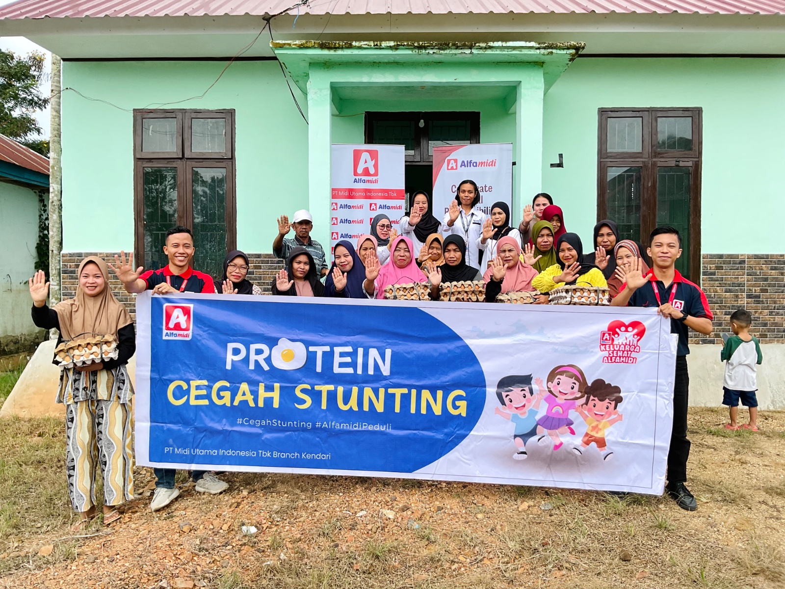 Penyaluran telur ini bagian dari program corporate social responsibility (CSR) Protein Cegah Stunting Alfamidi. Sebanyak 30 balita di Kecamatan Andowia menjadi penerima manfaat program ini.