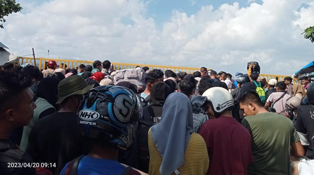 Koranmerdeka.com-Dua hari menjelang lebaran Hari Raya Idul Fitri 1444 Hijriah, jumlah penumpang kapal fery tujuan Kendari – Wawonii membludak.