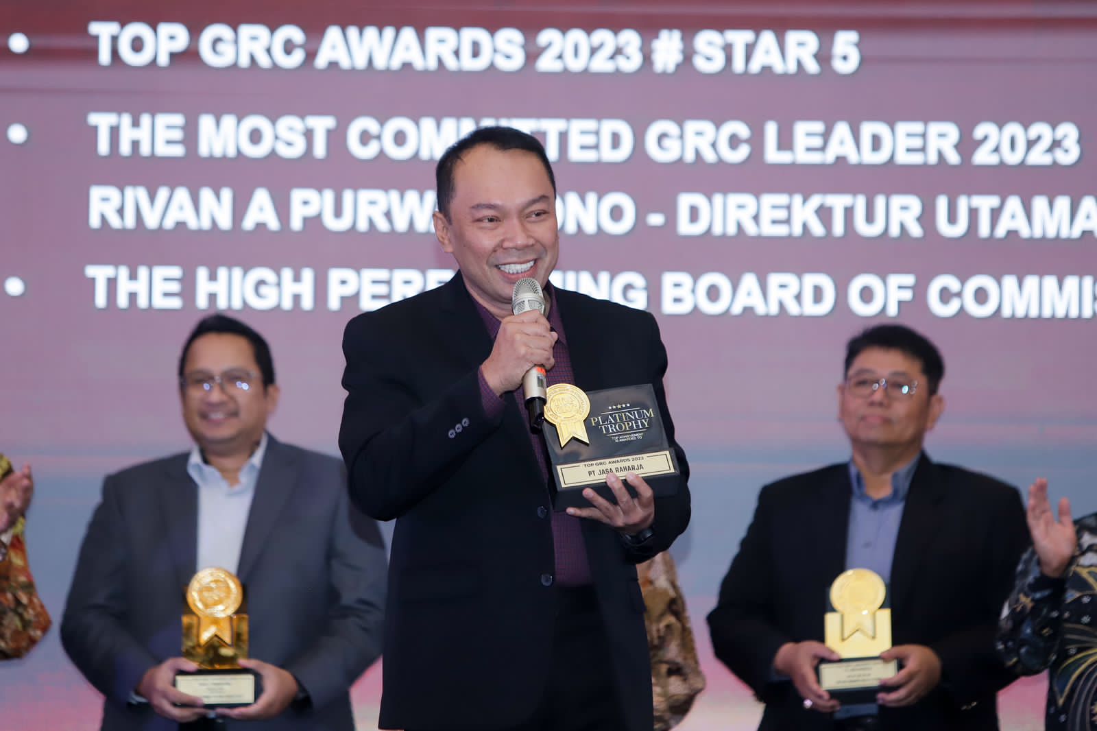 Dalam ajang tersebut, Jasa Raharja berhasil memboyong empat penghargaan. Yakni Platinum Star Trophy, Top GRC Award 2023 #5 Stars, The High Performing Board of Commissioners On GRC 2023 untuk Dewan Komisaris Jasa Raharja, dan The Most Comited GRC Leader 2023, yang disematkan kepada Direktur Utama Jasa Raharja Rivan A. Purwantono.