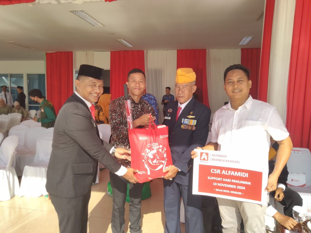 KoranMerdeka.com,Kendari – Dalam rangka memperingati Hari Pahlawan, PT Midi Utama Indonesia Tbk atau Alfamidi Branch Kendari bersama Pemerintah Kota (Pemkot) Kendari menyerahkan bantuan paket sembako kepada para veteran dan keluarga veteran sebagai bentuk penghargaan atas perjuangan mereka demi kemerdekaan NKRI.